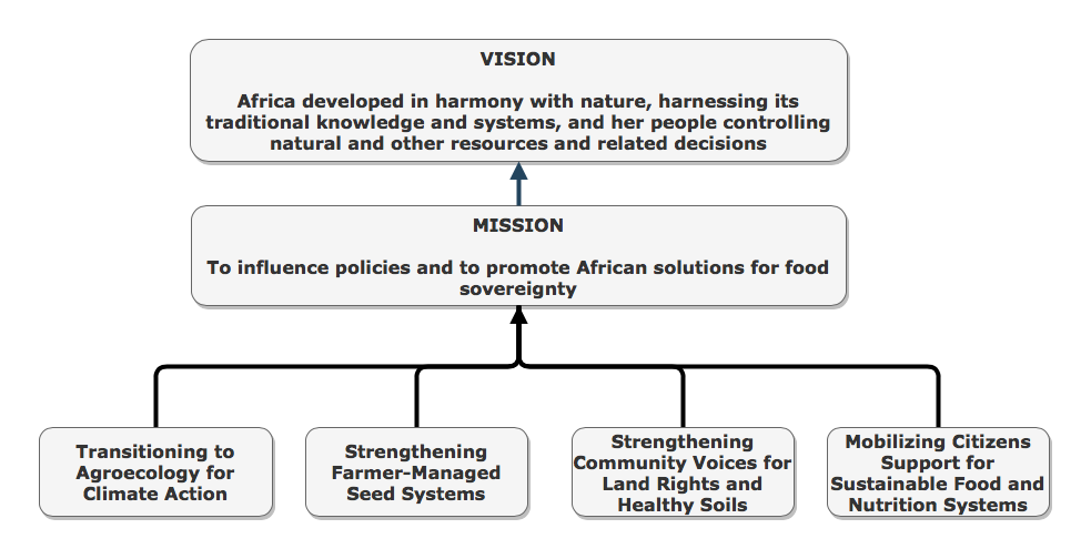 The first repositioning might be characterized as “Thinking Regionally, Acting Nationally”. While continental / regional policy is critically important, national policy and practice is where the rubber meets the road. Our member constituencies live in villages, towns and cities and this is where they are primarily engaged in activism, to improve the lives of their families and communities. This is where the energy and passion for change is most apparent. We intend to harness this energy, the energy of local activists, women, men and particularly the energy of youth – to take the struggle to the streets, building the movement and accelerating the transition to agroecology. This new ‘country focus’ will play out across the four strategic priority areas below, as each work-stream targets a specific set of African nations.