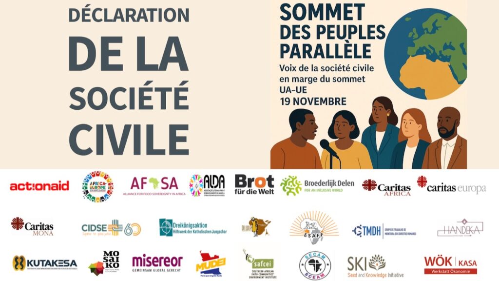 La déclaration commune de la société civile présente une vision de la coopération UA-UE centrée sur les personnes, appelant à la protection de l’espace civique, à une gouvernance décentralisée plus forte, à un commerce régional équitable, à une gouvernance transparente des ressources naturelles, à une inclusion significative des femmes et des jeunes, et à un soutien à l’agroécologie et aux systèmes de semences gérés par les agriculteurs.