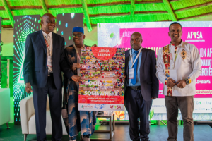 Fig 2: Launch of the “Food from Somewhere” report (From Left to right; AFSA Board Chair, Hakim Baliraine, IRPARD CEO and AFSA honorary member, Mamadou Goita, xxx, and AFSA General Coordinator, Million Belay Ali